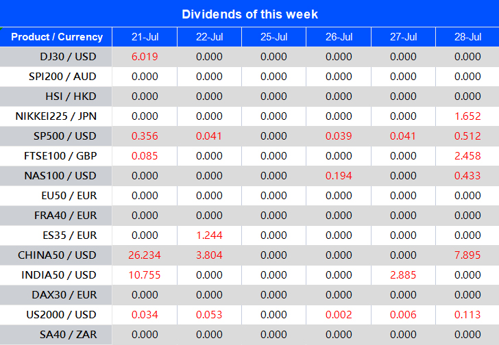 Warmly reminds you that the component stocks in the stock index spot generate dividends. When dividends are distributed, VT Markets will make dividends and deductions for the clients who hold the trading products after the close of the day before the ex-dividend date.