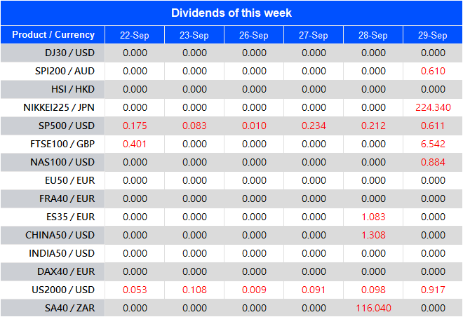 Warmly reminds you that the component stocks in the stock index spot generate dividends. When dividends are distributed, VT Markets will make dividends and deductions for the clients who hold the trading products after the close of the day before the ex-dividend date.